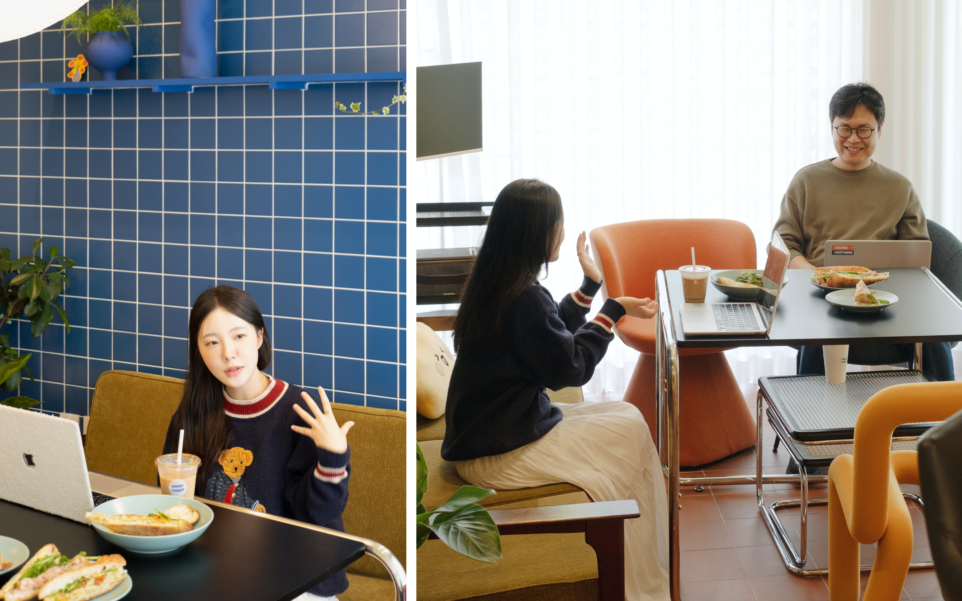 ์ ์ฃผ์ด์ด๋ฅผ ํ๋ฉด์ ํ๋ฃจ์ ์๋๋ ์กฐ๊ธ์ฉ ๋ฌ๋ผ์ก์ด์. ์์นจ์ด๋ฉด ํ์ฒ์ ๋ฐ๋ผ ๋ฌ๋ฆฌ๊ณ , ์์ ๊ทผ์ฒ ์นดํ์์ ์ปคํผ์ ๋นต์ ์ฌ ์ ํ์ด์ด ๋๋ ์๋ฆฌ์์ ์ฒ์ฒํ ํ๋ฃจ๋ฅผ ์์ํ์ฃ . ์ผ์ ํ๋ค๊ฐ๋ ์ฐฝ๋ฐ์ ๋ฐ๋, ๊ธธ ๊ฑด๋ ํ๊ฒฝ์ ์์ ์ด ๋จธ๋ฌผ๊ณค ํ์ด์. ๊ทธ๋ฐ ์ฌ์ํ ์๊ฐ๋ค์ด ์ง์ค๊ณผ ํด์์ ์์ฐ์ค๋ฝ๊ฒ ์ค๊ฐ๊ฒ ๋ง๋ค๋๋ผ๊ณ ์